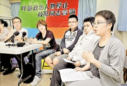 人之初 別亂扯 ▲同志團體聯(lián)合出面譴責施明德言論,指選臺灣地區(qū)領(lǐng)導人跟性向根本沒有關(guān)系,性傾向公開與否應尊重個人選擇。圖片來源:臺灣《中國時報》