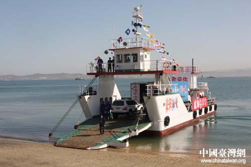 登陸艦上將要在劉公島卸載的長鬃山羊、梅花鹿。(中國臺灣網(wǎng) 劉海偉 攝)