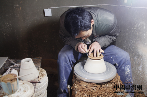 當(dāng)?shù)卮迕窈芏嘁允止し轮讫埲G青瓷為生。(中國(guó)臺(tái)灣網(wǎng) 王偉 攝)