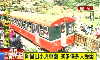 中國(guó)臺(tái)灣網(wǎng)4月27日消息 據(jù)臺(tái)灣“中央社”報(bào)道,27日中午,阿里山森林小火車行駛在阿木站至阿里山車站70公里處,因發(fā)生意外翻車。據(jù)稱目前已有20多人因事故受傷,臺(tái)灣方面正在緊急搶救當(dāng)中。(中國(guó)臺(tái)灣網(wǎng) 芮益芳)