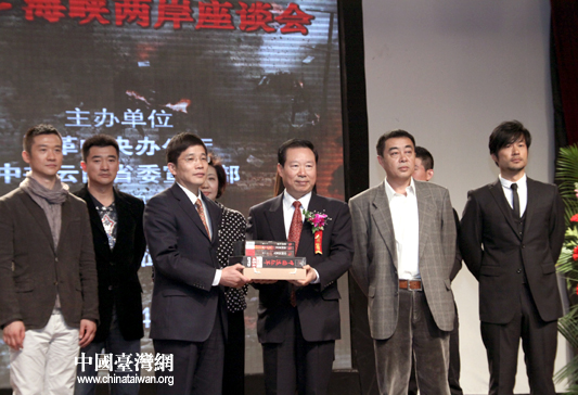 海協(xié)會副會長王在希代表劇組向中國人民抗日戰(zhàn)爭紀念館贈送了電視劇《中國遠征軍》珍藏版和歷史資料。(中國臺灣網(wǎng) 普燕 攝)