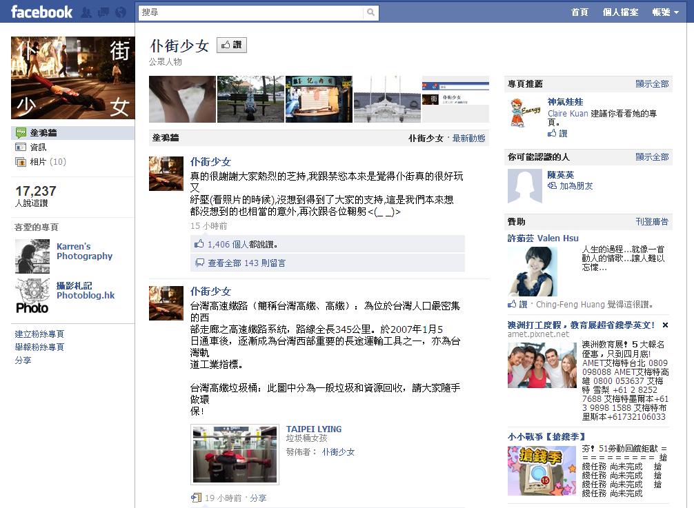 仆街少女的臉書(shū)爆火。圖片來(lái)源:臺(tái)灣媒體
