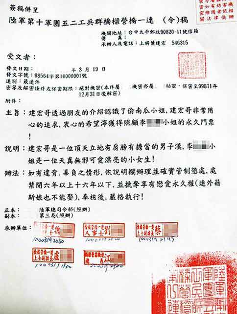 臺(tái)軍士兵把個(gè)人戀情寫成正式的機(jī)密公文。圖片來自網(wǎng)絡(luò)