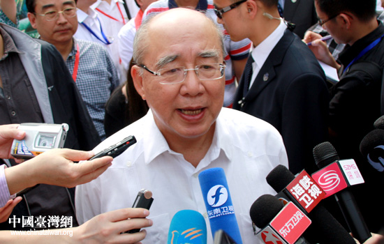 圖為吳伯雄在映秀鎮(zhèn)接受媒體采訪。(中國臺灣網(wǎng) 高斯斯 攝)