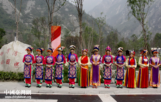 圖為身著民族盛裝的民眾歡迎吳伯雄一行。(中國臺灣網(wǎng) 高斯斯 攝)