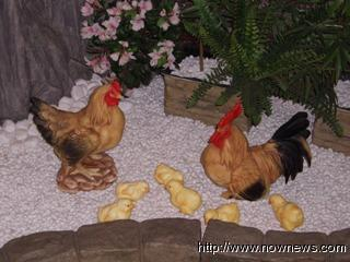 蔡英文昨日拜會呂秀蓮,呂從昔日的嚴厲批評轉(zhuǎn)為極盡吹捧。呂指著她辦公室大門處的一對帶著小雞的公雞和母雞稱,母雞看起來比公雞還要“雄糾糾、氣昂昂”,這“寓涵天機”。圖片來源:臺灣“今日新聞網(wǎng)”
