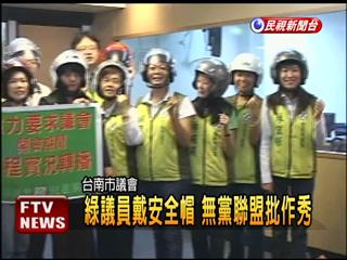 臺南市民進黨議員帶安全帽議事。圖片來源:臺灣民事新聞臺