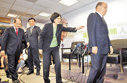 眼看兩人高來(lái)高去,民進(jìn)黨大佬柯建銘打岔說(shuō):“候選人(副手)以外,什么都可以談!碧K、蔡略顯尷尬。此時(shí)蔡英文本示意清場(chǎng)后再與蘇貞昌談,蘇貞昌卻說(shuō):“這場(chǎng)選舉不是那么簡(jiǎn)單,主席恐怕要快一點(diǎn)開始。”蔡英文強(qiáng)調(diào)已加緊作業(yè),蘇貞昌逼問(wèn):“那主席看怎么樣,就說(shuō)吧!”蔡英文仍說(shuō)要再商量。