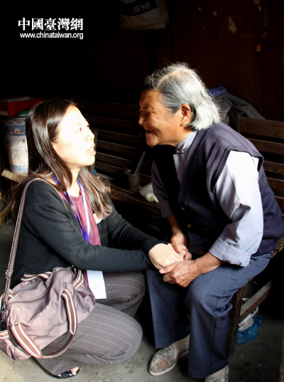 羅海蕓與何紹從老人的老伴交談,詢問奶奶的身體和近況。(中國臺灣網(wǎng) 楊永青 攝)