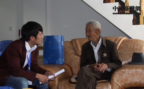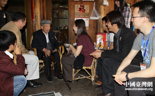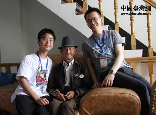 路珍樓老兵向羅海蕓等同學講述當年的抗日故事(中國臺灣網(wǎng) 楊永青 攝) 中國宋慶齡基金會李寧秘書長向路珍樓老兵贈送孫中山、宋慶齡郵冊(中國臺灣網(wǎng) 楊永青 攝) 湖南小老鄉(xiāng)周舟圍坐在黃有強老兵旁(中國臺灣網(wǎng) 楊永青 攝) 廖廣南(右)和李夢帆(左)與黃有強老兵合影(中國臺灣網(wǎng) 楊永青 攝)
