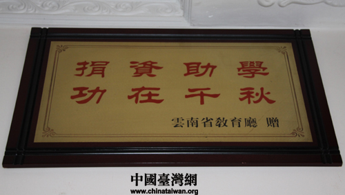 云南省教育廳頒發(fā)給邵應(yīng)壬老兵的獎(jiǎng)狀(中國(guó)臺(tái)灣網(wǎng) 楊永青 攝)