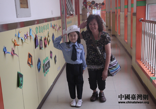 參觀華明一幼,參訪團(tuán)團(tuán)員與幼兒園小朋友親切互動(dòng)(中國(guó)臺(tái)灣網(wǎng) 吳捷 攝)