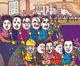 慶端午節(jié),國民黨再度推出交互式游戲,由馬英九領(lǐng)軍的現(xiàn)代隊,與孫中山領(lǐng)銜的古人隊進行龍舟PK賽,相當(dāng)逗趣。圖片來源:臺灣《聯(lián)合報》