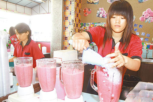 臺(tái)南市一家現(xiàn)榨果汁店,4臺(tái)果汁機(jī)整天滿載。圖片來源:臺(tái)灣媒體