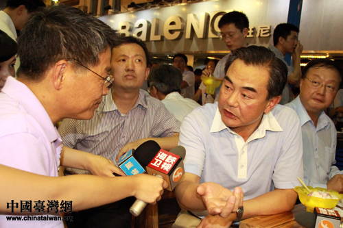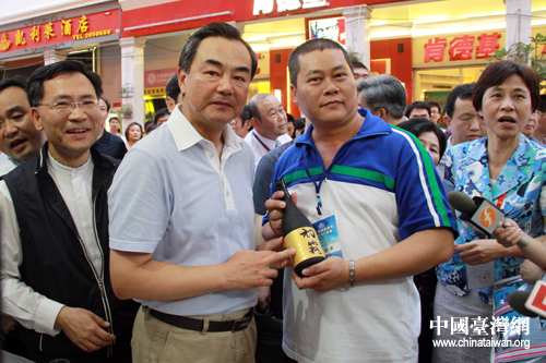 6月12日下午,正在廈門(mén)出席第三屆海峽論壇的國(guó)務(wù)院臺(tái)辦主任王毅參觀(guān)了在廈門(mén)市中山路舉行的臺(tái)灣特色廟會(huì),并與臺(tái)灣業(yè)者合影留念。(中國(guó)臺(tái)灣網(wǎng) 王偉 攝)