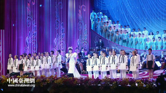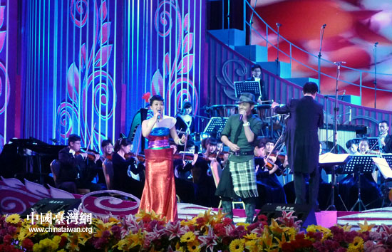 雷佳與臺(tái)灣歌手范逸臣演唱《那魯灣情歌》(中國臺(tái)灣網(wǎng) 李徽 攝)