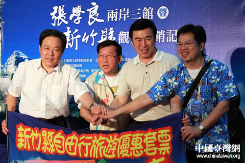 張學(xué)良兩岸三館負責(zé)人前來“助陣”,幫助新竹縣“吆喝”大陸游客赴臺個人游。(中國臺灣網(wǎng) 王偉 攝)