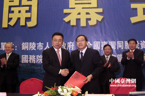 全國臺(tái)企聯(lián)與銅陵市政府簽署三項(xiàng)重要協(xié)議。(中國臺(tái)灣網(wǎng) 馬迪 攝)