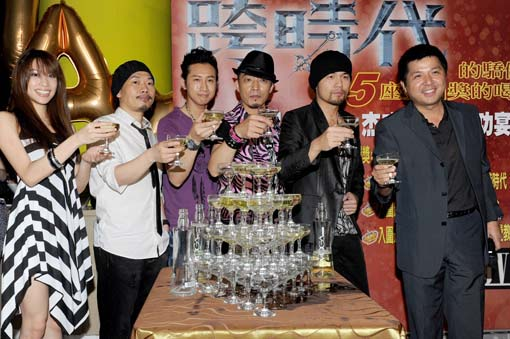 周杰倫(右二)在慶功宴上表示,希望3年內(nèi)尋得真命天女。圖片來(lái)源:臺(tái)灣“今日新聞網(wǎng)”