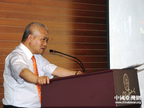 羅田安在交流會(huì)上發(fā)言。圖片來源:上海市臺(tái)辦