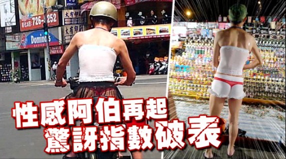 中國臺灣網(wǎng)7月4日消息 據(jù)臺灣媒體報(bào)道,日前因穿紅色丁字褲、外罩黑色薄紗裙騎車暴紅的男子,“性感阿伯”再度現(xiàn)身,被目擊換裝,在夜市玩套圈圈,上半身白色薄紗小可愛不變,下半身改穿有荷葉邊白色小熱褲再套上丁字褲,性感指數(shù)又破表了,島內(nèi)網(wǎng)友驚艷:“標(biāo)準(zhǔn)模特兒身材!”但也有網(wǎng)友諷:“阿伯界掀起偽娘超人裝扮流行嗎?”