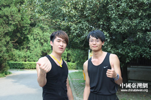 臺灣逢甲大學李連捷和中國地質(zhì)大學霍志強在武漢大學籃球場過了一把籃球癮(中國臺灣網(wǎng) 李丹 攝)