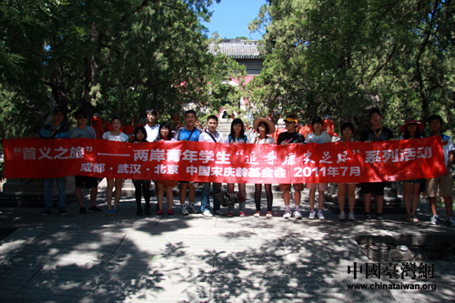 兩岸青年學(xué)子在碧云寺合影留念。(中國臺灣網(wǎng) 張維佳 攝)
