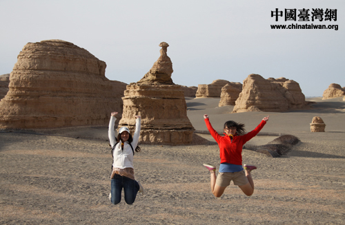 雅丹地質(zhì)公園合影留念(中國臺灣網(wǎng) 楊永青 攝)