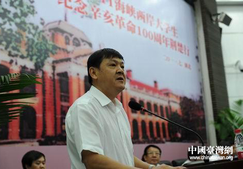 武漢大學(xué)校長李曉紅講話(湖北省臺辦 陸勝 攝)