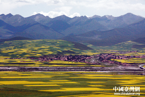油菜與青稞混種,成壟的油菜花構(gòu)成一幅天然的油彩畫。(中國臺灣網(wǎng) 楊云濤攝)