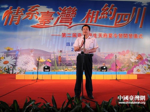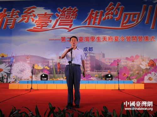 中共四川省委副書(shū)記、省人大常委會(huì)副主任、黨組書(shū)記李崇禧宣布第二屆臺(tái)灣學(xué)生天府夏令營(yíng)開(kāi)營(yíng)。圖片來(lái)源: 四川省臺(tái)辦