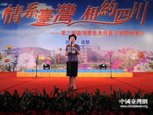 四川省人民政府副省長(zhǎng)黃彥蓉在開(kāi)營(yíng)儀式上致辭。圖片來(lái)源:四川省臺(tái)辦