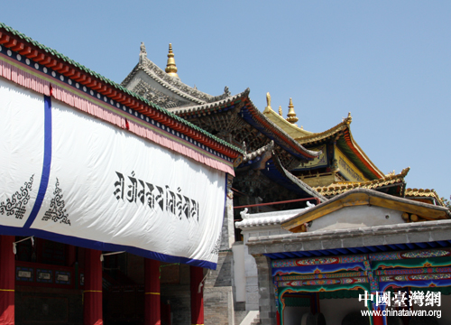 塔爾寺大金瓦殿一角,屋頂為黃金制成。(中國臺(tái)灣網(wǎng) 楊云濤 攝)