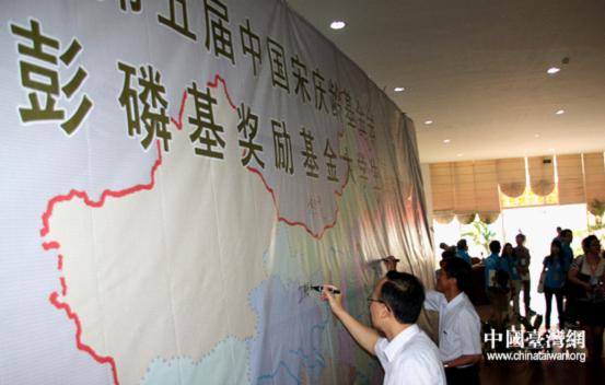 參與夏令營開營儀式的領(lǐng)導(dǎo)及師生在“祈福墻”上簽名紀(jì)念。(中國臺灣網(wǎng) 高斯斯 攝)