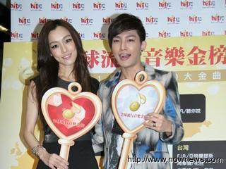 范范、炎亞綸揭曉“2011全球流行音樂金榜”上半年度20大金曲名單。圖片來源:臺灣媒體