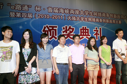 中國(guó)臺(tái)灣網(wǎng)7月28日北京消息 經(jīng)過(guò)緊張的初賽、復(fù)賽和分賽區(qū)決賽,由中國(guó)互聯(lián)網(wǎng)協(xié)會(huì)和中國(guó)臺(tái)灣網(wǎng)共同主辦,中國(guó)建設(shè)銀行主協(xié)辦的建行“e路通”杯首屆海峽兩岸大學(xué)生網(wǎng)絡(luò)商務(wù)創(chuàng)新應(yīng)用大賽暨第四屆大陸大學(xué)生網(wǎng)絡(luò)商務(wù)創(chuàng)新應(yīng)用大賽大陸賽區(qū)總決賽頒獎(jiǎng)典禮今天上午在北京交通大學(xué)隆重舉行,來(lái)自西安郵電學(xué)院的“隨風(fēng)E起沖”團(tuán)隊(duì)?wèi){借完善的方案、充分的實(shí)踐成果、出色的現(xiàn)場(chǎng)表現(xiàn)一路過(guò)關(guān)斬將勇奪本科組桂冠!本網(wǎng)記者在頒獎(jiǎng)現(xiàn)場(chǎng)對(duì)“隨風(fēng)E起沖”團(tuán)隊(duì)進(jìn)行了采訪。