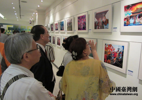 “光影世博”兩岸攝影家作品聯(lián)展在臺北舉行,吸引了大量臺灣同胞前往觀看(上海市臺辦 葛鳳章 攝)