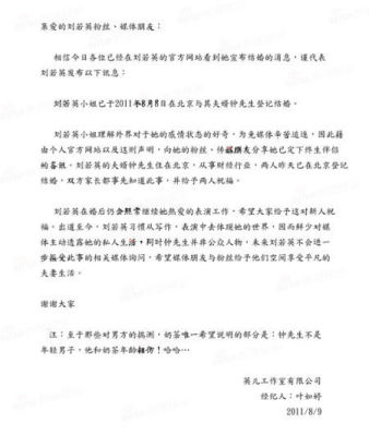 劉若英經(jīng)紀(jì)人發(fā)聲明稿,證實(shí)劉若英已于昨天(8日)在北京結(jié)婚。圖片來自網(wǎng)絡(luò)