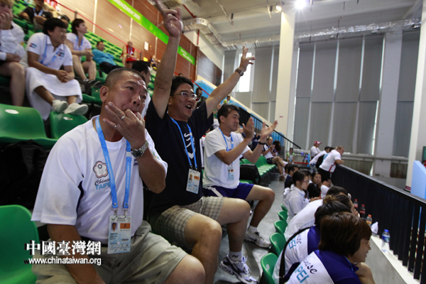 中華臺北隊(duì)教練為何筱珺吶喊助威(中國臺灣網(wǎng) 董憲超 攝)