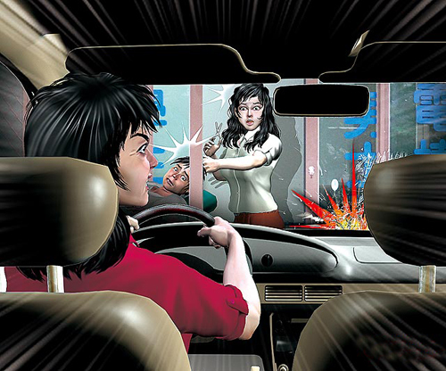 開車撞店示意圖,陳姓婦人懷疑林姓女子是“小三”,開車沖撞美發(fā)店店門,讓正在工作的林姓女子嚇一 大跳。圖片來(lái)源:臺(tái)灣媒體