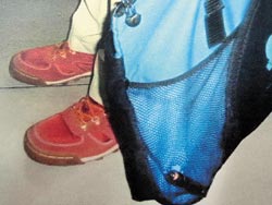 蔡姓助理教授將筆型針孔攝影機(jī)放在手提袋側(cè)邊的網(wǎng)袋里,伺機(jī)偷拍裙底風(fēng)光。圖片來(lái)源:臺(tái)灣《中國(guó)時(shí)報(bào)》