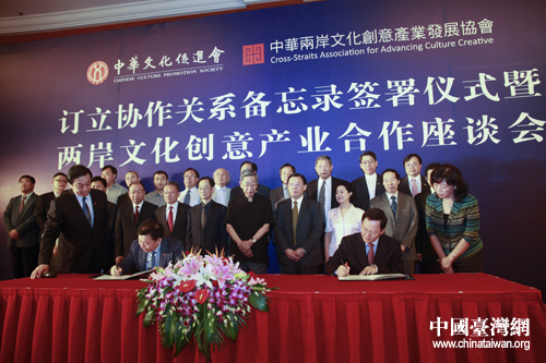 中國(guó)臺(tái)灣網(wǎng)9月7日北京消息 今天上午,中華文化促進(jìn)會(huì)與來自臺(tái)灣的中華兩岸文化創(chuàng)意發(fā)展協(xié)會(huì)在京舉行訂立協(xié)作關(guān)系備忘錄簽署儀式;顒(dòng)以“創(chuàng)意中華”為主題,致力于共同推動(dòng)兩岸文化創(chuàng)意產(chǎn)業(yè)的發(fā)展。