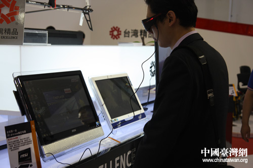 參展觀眾體驗(yàn)超逼真3D觸控一體機(jī)。(中國臺灣網(wǎng) 吳斌 攝)