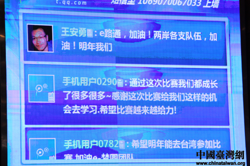 大賽現(xiàn)場(chǎng),兩岸大學(xué)生通過(guò)騰訊微博進(jìn)行熱烈的互動(dòng)交流。(中國(guó)臺(tái)灣網(wǎng) 芮益芳 攝)