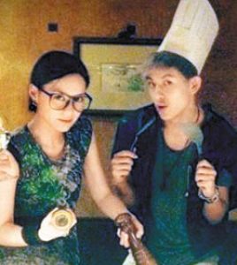 阿嬌(左)和貌似陳冠希的敖犬同吃鐵板燒。圖片來源于網(wǎng)絡(luò)