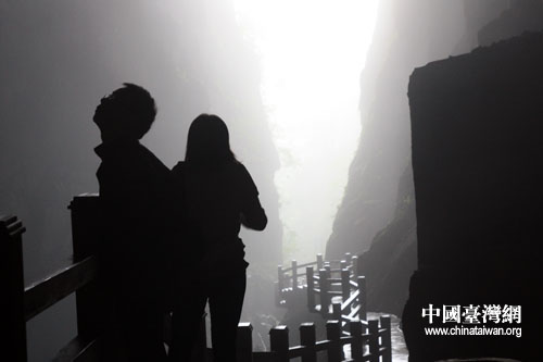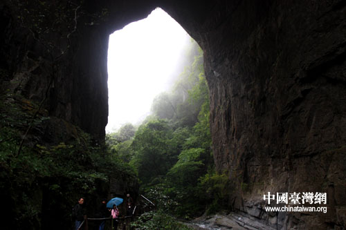 兩岸記者在坪壩營四洞峽內(nèi)。(中國臺灣網(wǎng) 王曉蕊 攝)