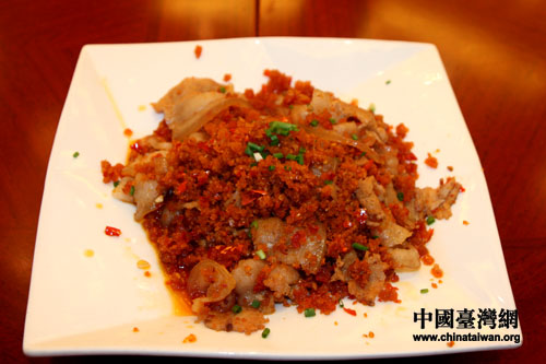 恩施由于其特殊的地理環(huán)境,所以當?shù)夭惋嫾扔惺竦芈槔碧厣志邽t湘咸辣風格。特別是當?shù)仡H具土家族和苗族特色的風味小吃更是吸引了一行的兩岸記者們,每至飯時,記者們在舉筷品嘗前均爭相拍照留念。(記者 王曉蕊)