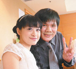 臺(tái)灣從事廣告設(shè)計(jì)的cosplay迷馬家儀(左)、林芳妤,以硬紙板制造日本動(dòng)漫《機(jī)動(dòng)戰(zhàn)士》人物,作為結(jié)婚禮服。圖片來(lái)自臺(tái)灣媒體
