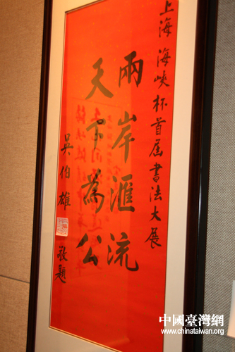 中國國民黨榮譽主席吳伯雄書法作品“兩岸匯流 天下為公” (中國臺灣網(wǎng) 李桂英 攝) 第1頁第2頁第3頁