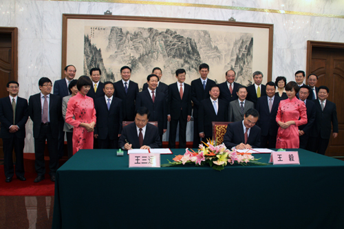 中國臺灣網(wǎng)10月14日北京消息 為全面貫徹落實(shí)中央對臺工作大政方針和國家中部崛起戰(zhàn)略部署,積極配合《海峽兩岸經(jīng)濟(jì)合作框架協(xié)議》的實(shí)施,2011年10月14日,國務(wù)院臺灣事務(wù)辦公室與安徽省人民政府在北京簽署了促進(jìn)皖臺交流合作備忘錄。中央臺辦、國務(wù)院臺辦主任王毅和中共安徽省委書記張寶順、安徽省省長王三運(yùn)共同出席了簽字儀式。